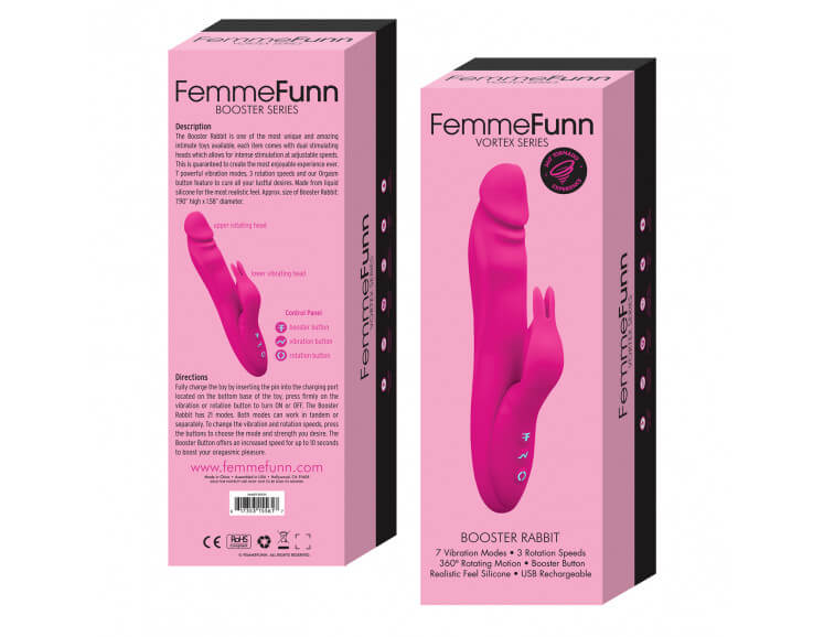 The Booster Rabbit has dual motors with 3 control buttons that control 3 rotation speeds, 7 vibration modes and a boost button.