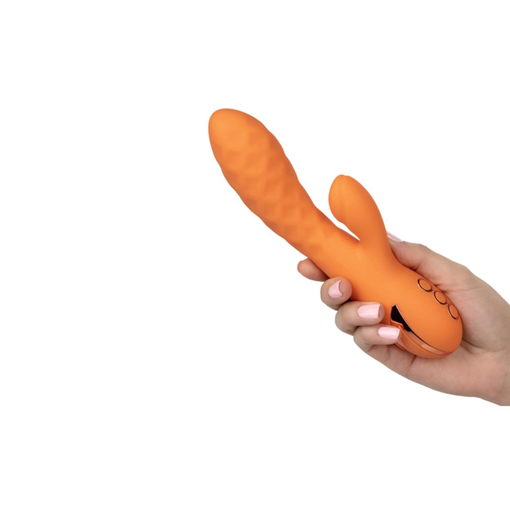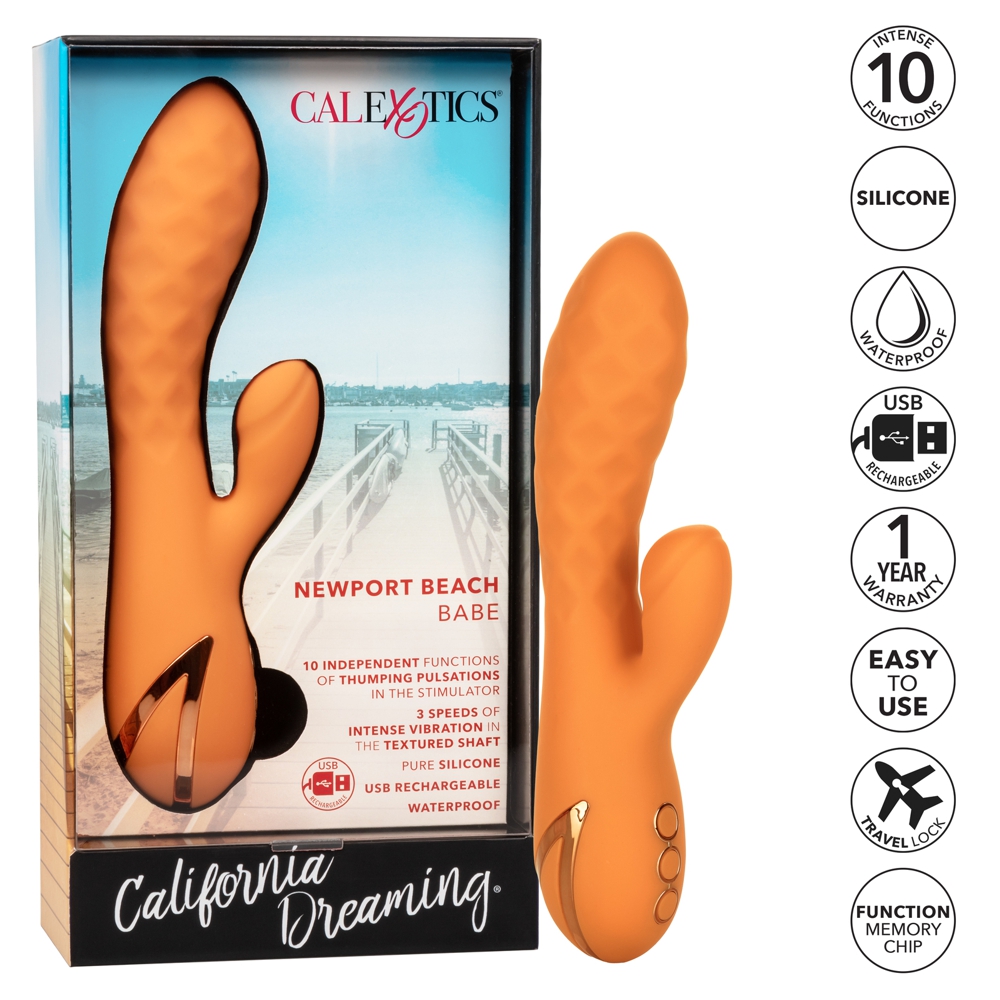 Give yourself over to the motion of the ocean with the California Dreaming®: Newport Beach Babe. This luxurious massager has 10 intense, thumping teaser functions, 3 shaft vibration speeds, and a sensually textured shaft for an earth-shattering pleasure experience.