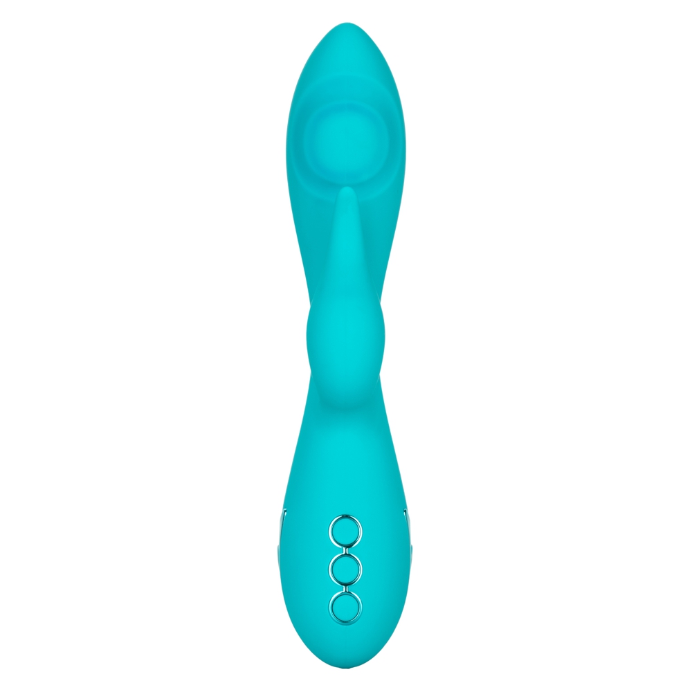 While the flickering stimulator teases, the tapered shaft and curved tip delivers an intense thumping stimulation. The curved tip uses a pounding sensation for intense g-spot stimulation, and the teasing tickler uses a powerful motor to deliver blissful external stimulation. This flexible teaser can be used independently from the thumping function for fully customizable pleasure.