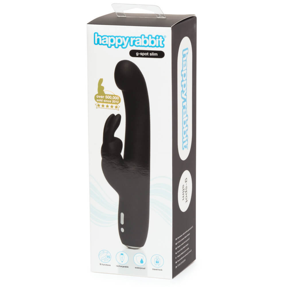 happy rabbit® Slimline G-Spot’s vital stats: ears: 3 x speeds; shaft: 3 x speeds and 9 x patterns