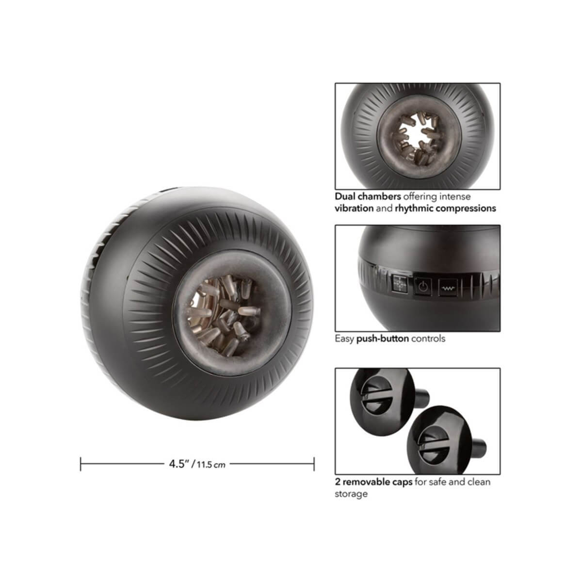 The Optimum Power® Masturball™ is a fully self-contained vibration power stroker packed with 10 functions of vibration, 3 functions of sensational compression and pressure sensitive tickler pads for a completely customizable stroking experience. Pressure sensitive squeeze pads customize tightness with every stroke, while the variety of functions tickle and tease you towards new climactic heights.
